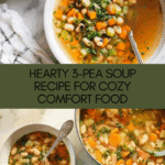 Keywords: 3-pea soup, split peas, chickpeas, black-eyed peas, vegetarian soup, healthy soup, easy soup recipe, vegetable broth soup