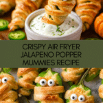 Keywords: jalapeno poppers, air fryer appetizer, Halloween snacks, cheesy jalapeno mummies, crescent roll appetizers