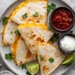 - Serve: Remove the quesadillas from the air fryer and serve immediately. Pair with your favorite toppings or dips such as salsa, sour cream, or guacamole for added flavor.