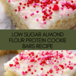 Keywords: almond flour sugar cookie bars, low sugar dessert, protein cookie bars, gluten free bars, healthy dessert, monk fruit sweetener dessert
