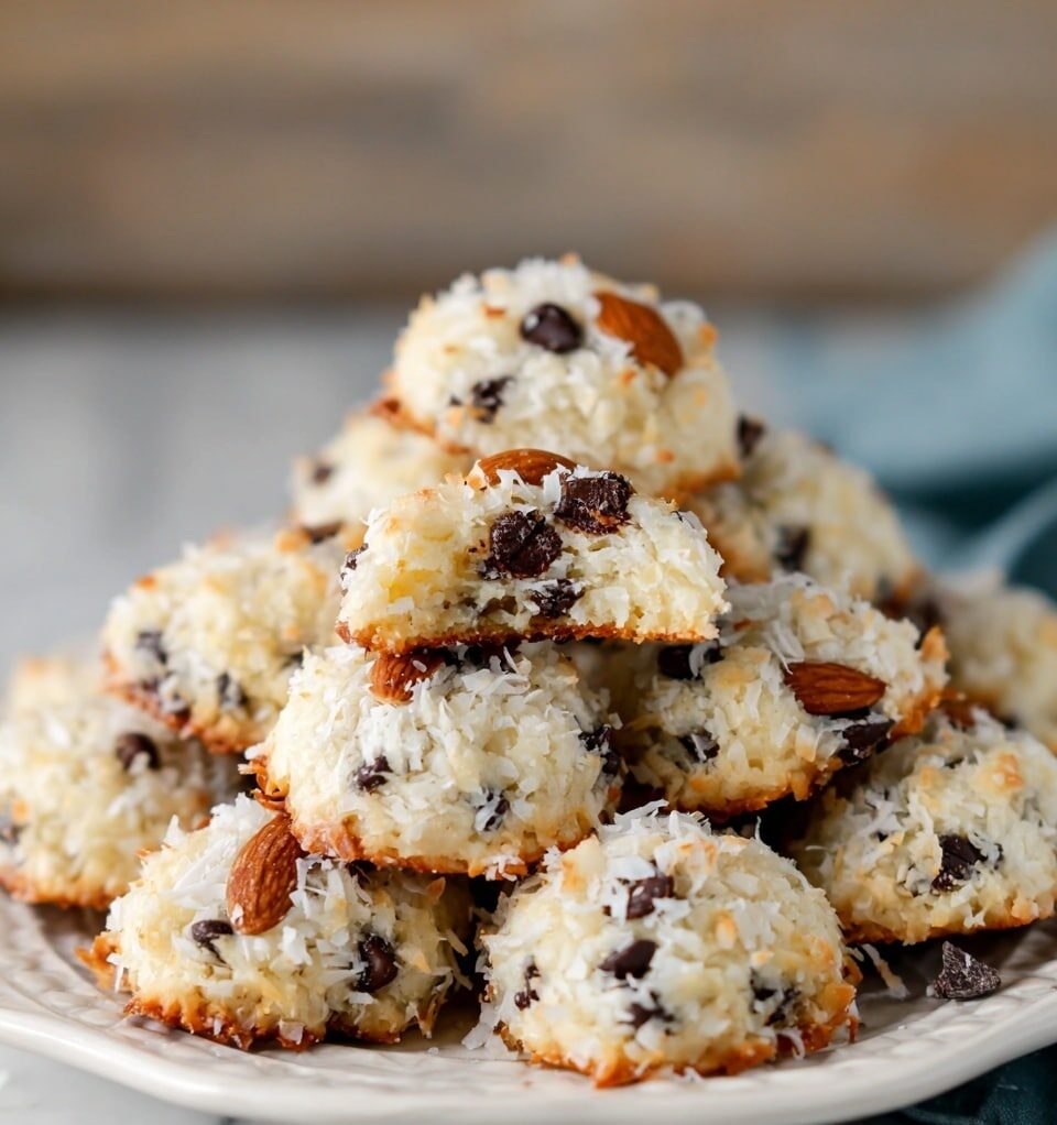 Almond Joy Cookies are a simple, delicious treat made with just four ingredients: sweetened coconut flakes, semi-sweet chocolate chips, lightly salted almonds, and sweetened condensed milk. These cookies combine classic flavors of coconut, chocolate, and almonds to create a rich, chewy cookie reminiscent of the classic Almond Joy candy bar. Perfect for quick baking, they are easy to make and ideal for satisfying your sweet tooth with minimal effort.