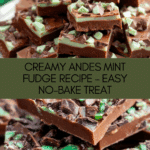 Keywords: Andes mint fudge, chocolate fudge, no-bake fudge, mint chocolate dessert, easy fudge recipe