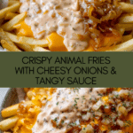 Keywords: Animal Fries, loaded fries, cheese fries, caramelized onions, special sauce, air fryer fries, snack recipe