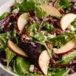 Keywords: apple salad, candied pecans, blue cheese salad, mixed greens salad, autumn salad, dried cranberry salad, healthy salad, easy salad recipe