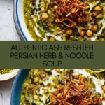Keywords: Ash Reshteh, Persian soup, Persian herbs soup, Persian noodle soup, Ash Reshteh recipe, traditional Iranian soup, hearty green soup, Persian cuisine, vegetarian Persian dishes