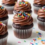 Delight in these rich and moist Bake Sale Fudge Cupcakes, featuring the deep flavor of Dutch-process cocoa and melty chocolate chips. Perfectly tender with a hint of espresso and vanilla, these cupcakes are an irresistible treat for any occasion.