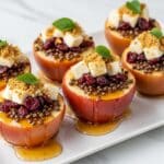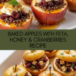 Delightfully warm and comforting baked apples stuffed with a savory-sweet mixture of crumbled feta cheese, dried cranberries, honey, and fragrant cinnamon. This easy dessert blends soft baked fruit with creamy cheese and a hint of vanilla, finished with a buttery golden top and optional fresh mint garnish. Perfect for a cozy treat or elegant autumn dessert.