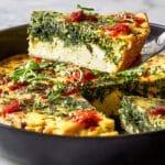 This Baked Feta Frittata is a vibrant and flavorful dish featuring a blend of fresh herbs, creamy eggs, and tangy French feta. Baked to golden perfection in a cast-iron skillet, it’s topped with a spicy-sweet harissa drizzle that adds a delightful kick. Perfect for brunch, breakfast, or a light dinner, this easy-to-make frittata combines rich textures with herbaceous freshness.