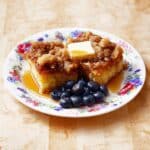 - Serve: Scoop out individual portions and top with a pat of butter, a drizzle of warm syrup, and fresh blueberries for a perfect breakfast or brunch treat.