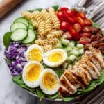 This Balsamic Chicken Cobb Salad with Pasta combines juicy grilled chicken, fresh vegetables, and tangy dressings for a satisfying and flavorful meal. It’s perfect for a hearty lunch or a light dinner that feels special but is easy to prepare.