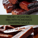 Keywords: vegan ribs, seitan ribs, bbq ribs, smoky bbq sauce, tamarind barbecue sauce, plant-based bbq, vegan main dish
