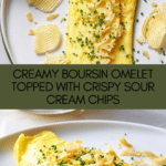 Keywords: omelet, Boursin cheese, breakfast, savory eggs, sour cream and onion chips, creamy omelet, easy breakfast recipe