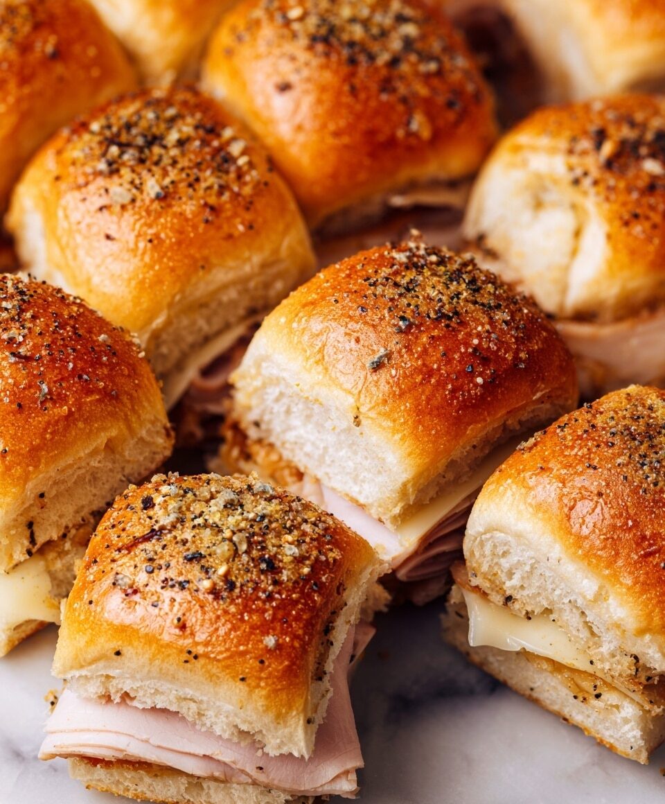 Keywords: turkey sliders, oven baked sliders, turkey sandwiches, easy slider recipe, provolone cheese sliders, everything bagel seasoning sliders