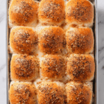 Keywords: turkey sliders, oven baked sliders, turkey sandwiches, easy slider recipe, provolone cheese sliders, everything bagel seasoning sliders