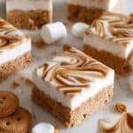 Delightfully crispy and chewy Biscoff Rice Krispies Treats infused with the distinctive caramelized flavor of Lotus Biscoff cookies and spread, topped with a luscious layer of white melting chocolate for an irresistible treat that’s perfect for any occasion.