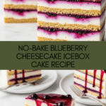 Keywords: blueberry cheesecake, icebox cake, no bake dessert, layered dessert, creamy cheesecake, blueberry sauce, graham crackers