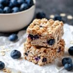 It’s best to use fresh blueberries as frozen ones can release excess moisture, which may make the Rice Krispies soggy. If using frozen, thaw and drain them thoroughly before folding into the mixture.