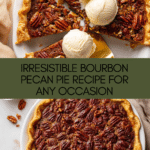 Bourbon pecan pie is a classic Southern dessert that combines rich, nutty flavors with a hint of warm bourbon. This pie features a perfectly flaky crust filled with a gooey, sweet filling studded with crunchy pecans. It’s an irresistible treat for holidays or any special occasion.
