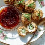 These Boursin Cheese Stuffed Olives are an elegant and flavorful appetizer featuring creamy shallot and chive-flavored Boursin cheese stuffed inside Castelvetrano olives, then coated with a crispy mixture of fried shallots, chives, and toasted sesame seeds. Served alongside a luscious fig and honey salsa macha dipping sauce, this recipe offers a delightful balance of creamy, sweet, savory, and spicy flavors perfect for entertaining or special occasions.