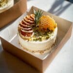 - Frost and Finish: Spread the remaining whipped brie mixture evenly over the top and sides of the stuffed brie. Sprinkle the remaining 2 tablespoons of chopped pistachios on top. Arrange the dried mandarin slices, honeycomb slice, and rosemary sprig decoratively on the surface. Refrigerate uncovered for an additional 30 minutes before serving or packaging to prevent condensation.