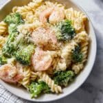 Keywords: Broccoli Shrimp Alfredo, shrimp pasta, creamy alfredo sauce, broccoli pasta, easy seafood dinner, fusilli pasta recipe