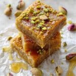 These Brown Butter and Honey Pistachio Cookie Bars bring a wonderful nutty depth paired with a touch of natural sweetness from honey. Crispy at the edges and soft in the center, they make a perfect treat for any time of day. You’ll love the contrast of flaky sea salt and crunchy pistachios in every bite.