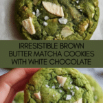 Keywords: brown butter cookies, matcha cookies, white chocolate cookies, baked cookies, green tea cookies, easy dessert