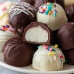 - Shape Funfetti Buttercream: Form into round balls and flatten slightly as with vanilla version. Refrigerate on baking sheet at least 2 hours before chocolate coating.