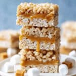 Caramel Rice Krispies Treats take the classic crispy snack to a whole new level by layering sweet caramel between two fluffy marshmallow and cereal layers. This easy no-bake dessert is perfect for gatherings or a fun family treat.