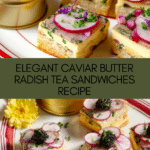 Caviar Butter Radish Tea Sandwiches offer a delicate blend of fresh, peppery radishes and rich, lemony butter crowned with luxurious caviar. These elegant bites are perfect for impressing guests at afternoon tea or a sophisticated gathering.