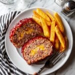 Keywords: Cheeseburger Meatloaf, ground beef meatloaf, baked meatloaf recipe, cheesy meatloaf, family dinner, comfort food