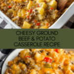 Keywords: ground beef casserole, cheesy potato casserole, baked beef and potatoes, easy family dinner, comfort food casserole