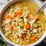 This comforting Chicken Barley Soup combines tender shredded rotisserie chicken with hearty barley and fresh vegetables in a savory chicken broth. Perfect for a warming meal any day, it’s packed with nutritious ingredients and flavored with a blend of classic herbs and seasonings.