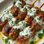 Chicken Kofta with Garlic Yogurt Sauce is a flavorful and tender dish perfect for a quick dinner or entertaining guests. These spiced ground chicken patties pair beautifully with a refreshing, tangy yogurt sauce that adds a creamy contrast to the smoky koftas.