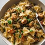 This Chicken Piccata Pasta is a delightful Italian-American dish that combines tender chicken pieces with a tangy lemon-caper sauce, served over al dente bow tie pasta. The chicken is lightly coated in flour and pan-seared to golden perfection before being tossed in a buttery, savory sauce infused with garlic, shallots, and fresh lemon juice. A perfect weeknight dinner that balances bright flavors and hearty comfort.