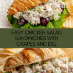 Chicken salad sandwiches are a classic, satisfying meal perfect for lunch or a light dinner. This version combines creamy mayo with tangy Dijon and fresh dill, complemented by grapes for a touch of sweetness. Served on buttery croissants, they’re easy to prepare and delicious to eat.