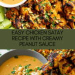 Keywords: chicken satay, grilled chicken satay, peanut sauce chicken, Southeast Asian chicken skewers, grilled chicken skewers, curry marinated chicken