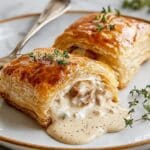 Keywords: Chicken Wellington, puff pastry chicken, Dijon cream sauce, mushroom spinach filling, baked chicken recipe
