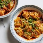 Chicken Wontons in Spicy Chili Sauce is a flavorful and comforting dish perfect for a quick meal. Tender wontons simmered with savory mushrooms and a kick of chili crisp make every bite deliciously satisfying.