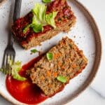 - Step 7: In a small bowl, mix together the glaze ingredients: tomato sauce or ketchup, maple syrup, and vinegar. Spread the glaze evenly over the top of the loaf.