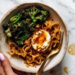 - Assemble and Serve: Plate the pasta, top with the smashed roasted broccoli and soft eggs. Drizzle additional chili crisp over the eggs if desired for an extra burst of heat and flavor. Serve immediately and enjoy a balanced, spicy, and comforting meal.