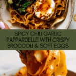 This Chili Garlic Pappardelle with Smashed Broccoli and Soft Eggs is a flavorful, comforting dish packed with spicy, savory notes and delightful textures. The combination of tender pasta, crispy roasted broccoli, and silky soft eggs makes it a perfect meal any day of the week.
