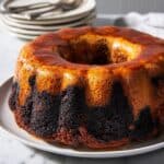 Keywords: chocoflan, impossible cake, chocolate flan cake, caramel flan, layered dessert, Mexican dessert, baking with water bath, cream cheese flan