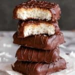 - Coat bars: Quickly dip each coconut bar into the melted chocolate, ensuring they are completely covered. Place the coated bars on a lined plate.