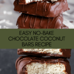 These delicious Chocolate Coconut Bars are a simple, no-bake treat featuring a chewy coconut base sweetened with maple syrup and coated in rich melted chocolate. Perfect for a healthy snack or dessert, they combine natural sweetness and creamy textures for a satisfying bite.