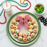 - Decorate: Lightly dust the wreath with powdered sugar and sprinkle red and green sprinkles over the top for a festive finish.