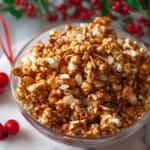 Christmas Popcorn Candy is a festive treat featuring air-popped popcorn coated with a warm spiced caramel glaze, mixed with crunchy slivered almonds, and baked to perfection for a crisp, sweet snack that’s perfect for holiday celebrations.