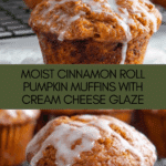 Keywords: pumpkin muffins, cinnamon roll muffins, pumpkin recipes, fall baking, cream cheese glaze, cinnamon swirl, breakfast muffins, seasonal treats