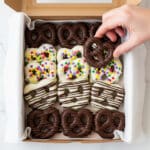 Store chocolate covered pretzels in an airtight container at room temperature for up to 1 week. For longer freshness, refrigerate them for up to 2 weeks. Bring to room temperature before serving for the best texture. Avoid storing in humid areas to prevent chocolate bloom.