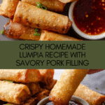 Lumpia is a delicious Filipino-style spring roll that’s crispy on the outside and packed with savory pork and vegetable filling. Perfect as a snack or appetizer, these golden rolls are sure to impress your family and friends.